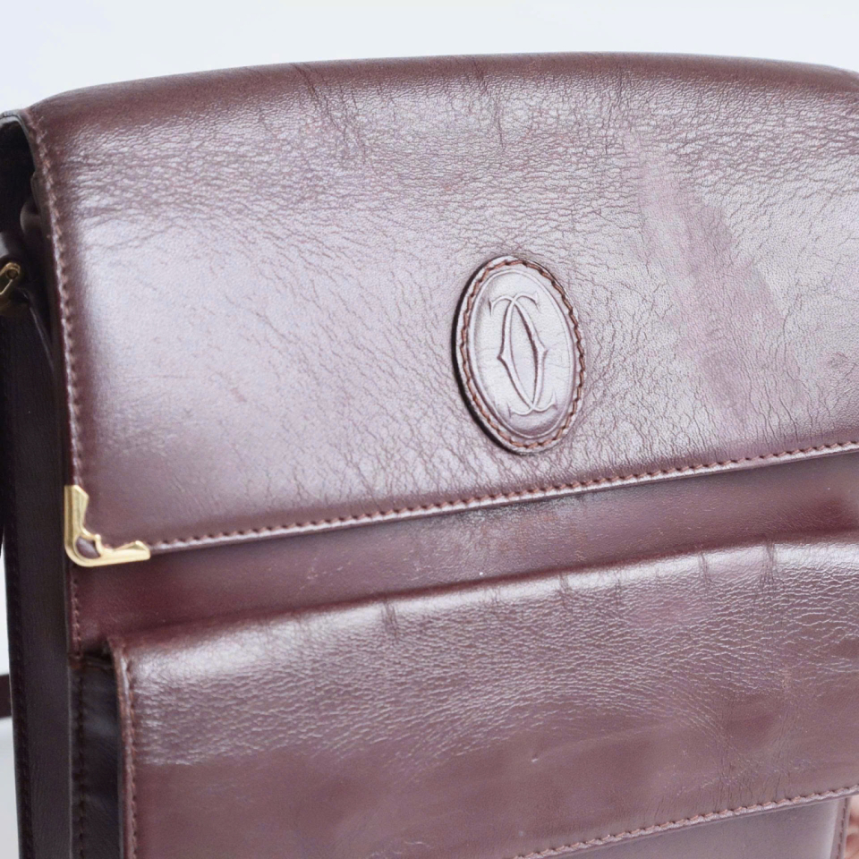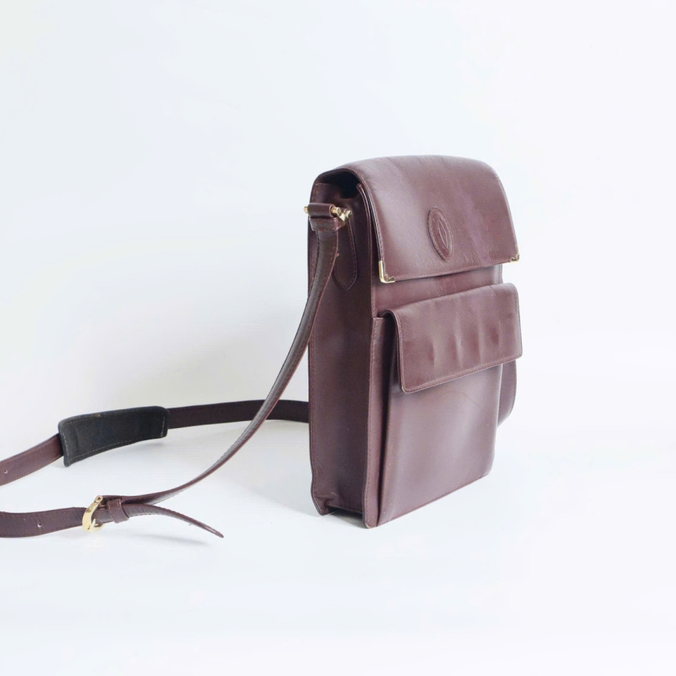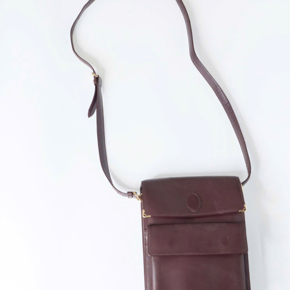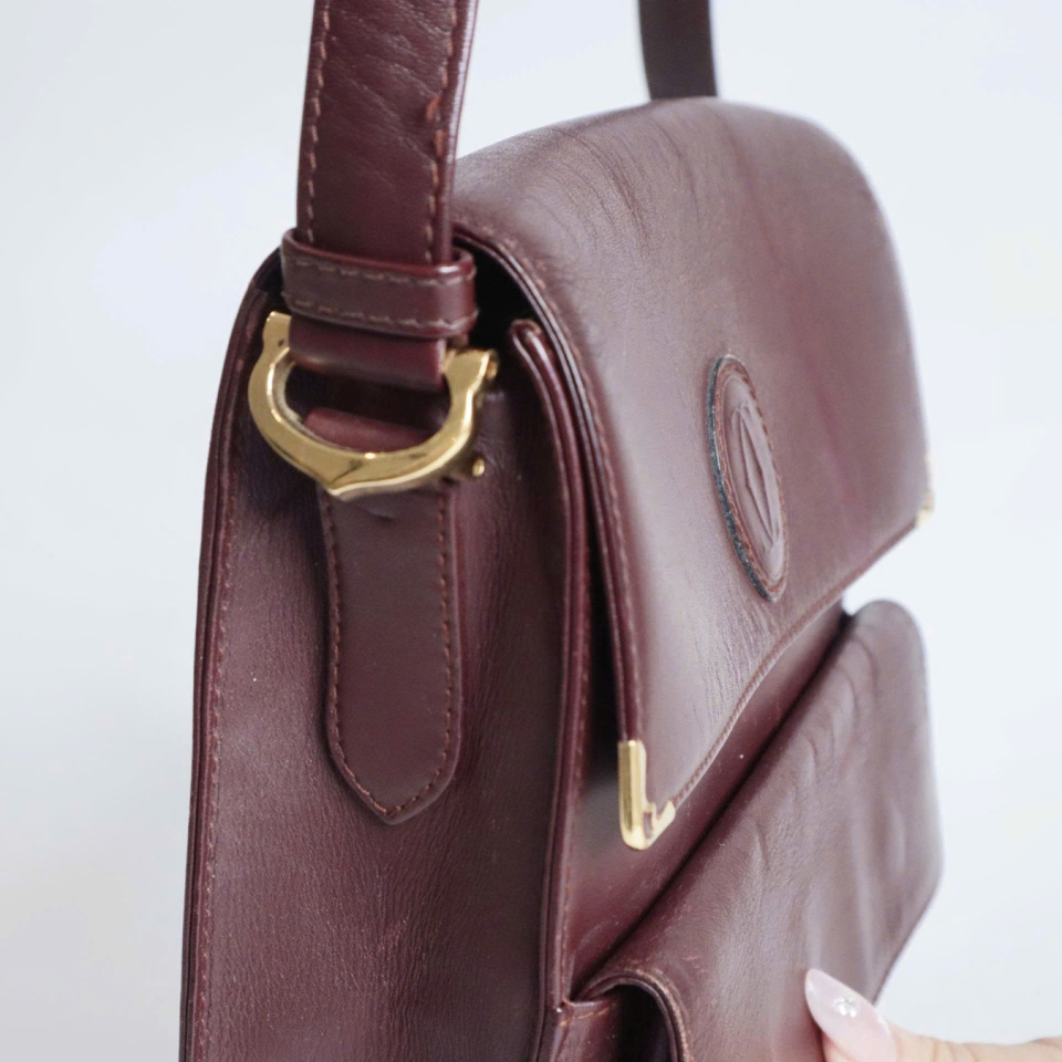 Cartier Must de Cartie vintage, làm từ da bê, đỏ Bordeaux.