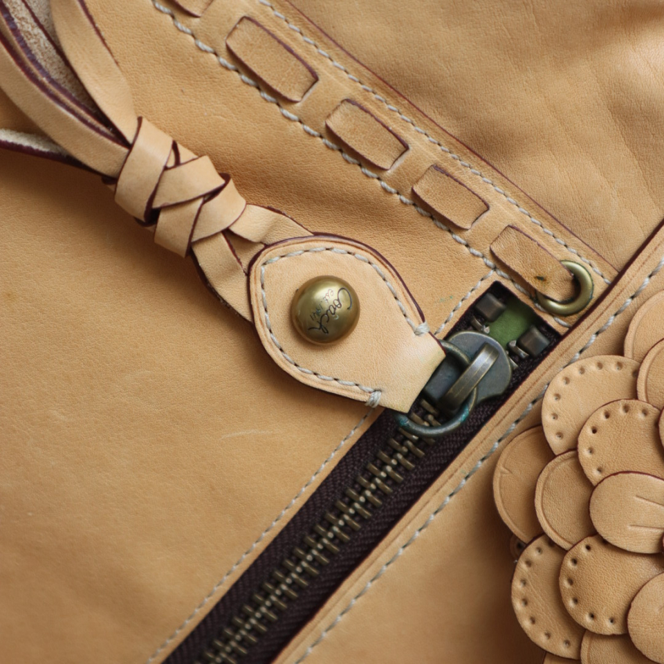 làm từ da Saffiano cao cấp với khóa kéo trên cùng màu bạc, phụ kiện kim loại và chữ ký đặc trưng.