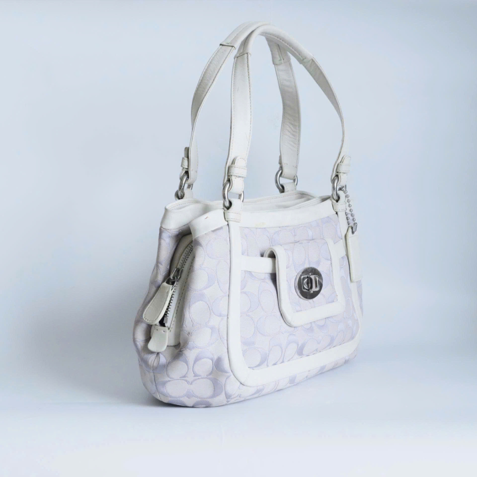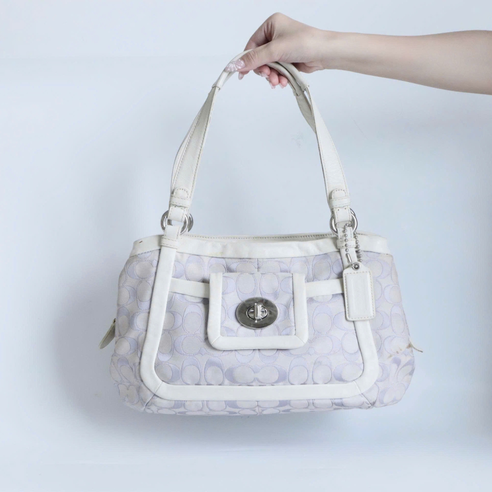 Một em túi vải canvas phối da, màu pastel cực xinh, lót trong mới sạch, đựng được nhiều đồ.