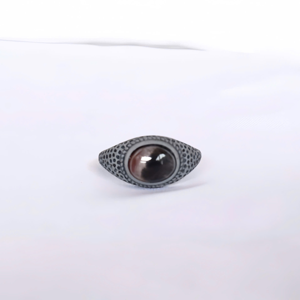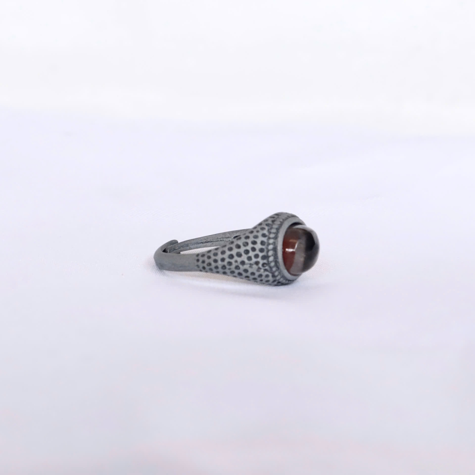 Đá quý: Viên đá hình bầu dục màu nâu đỏ sẫm được mài trơn cổ điển, với ý nghĩa tượng trưng cho đam mê, nhiệt huyết, sức sống và tình yêu vĩnh cửu.