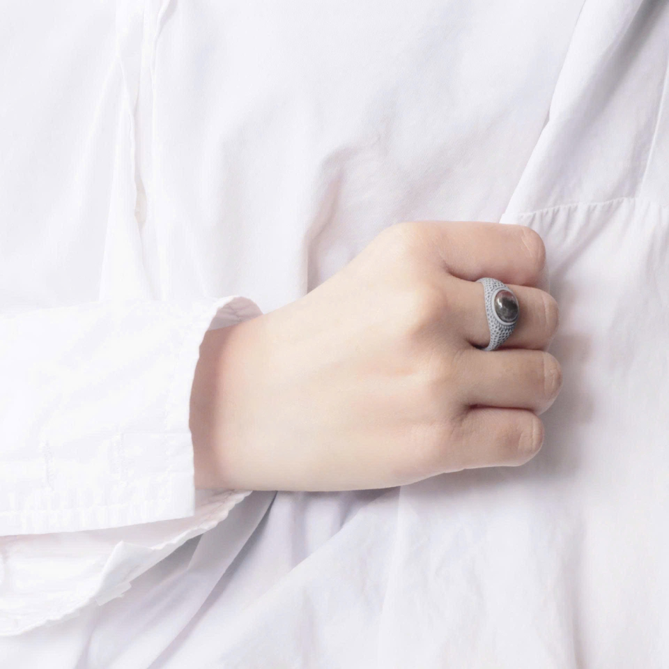 Thiết kế: Nhẫn có thiết kế hiện đại và độc đáo, với phần thân chạm khắc các chấm nhỏ li ti.