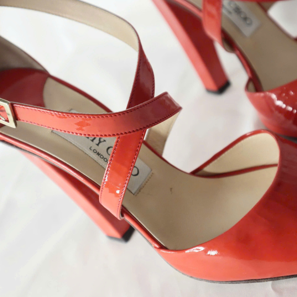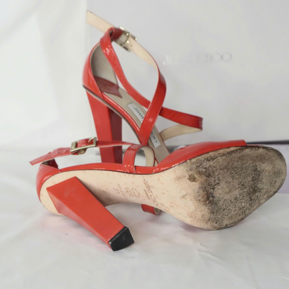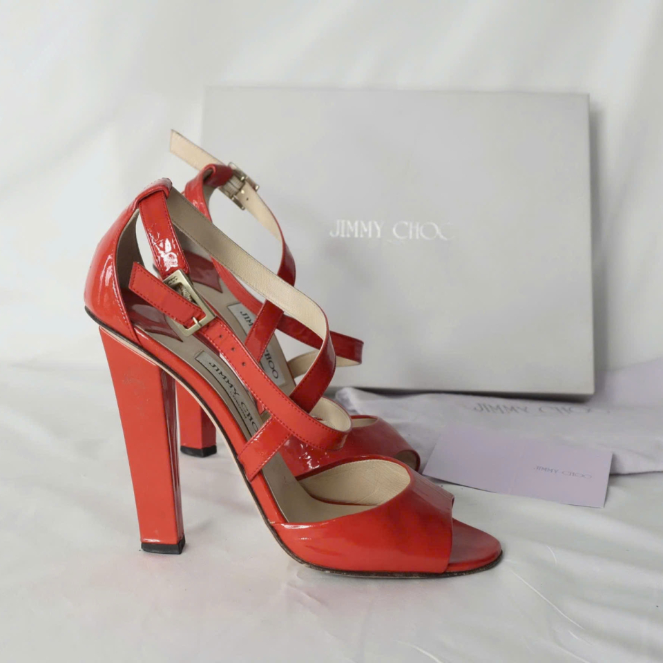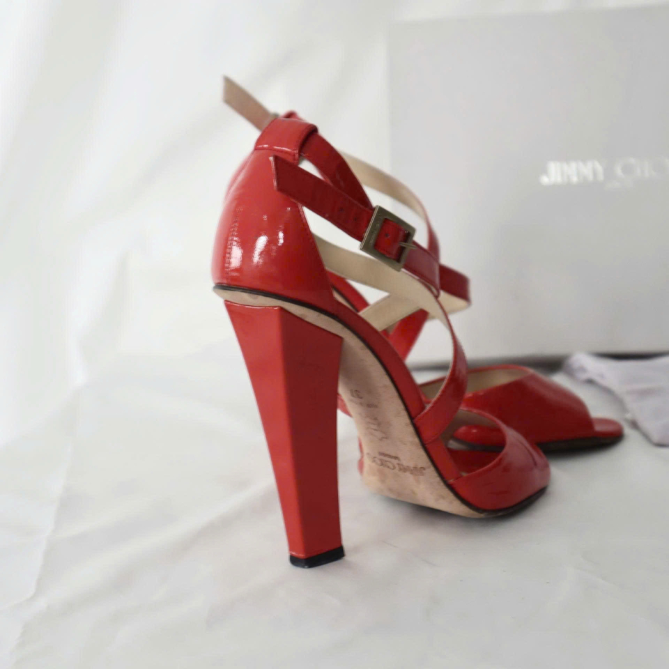 Kiểu dáng: Sandal cao gót có quai bắt chéo và quai vòng cổ chân, mũi hở (peep toe/open toe)