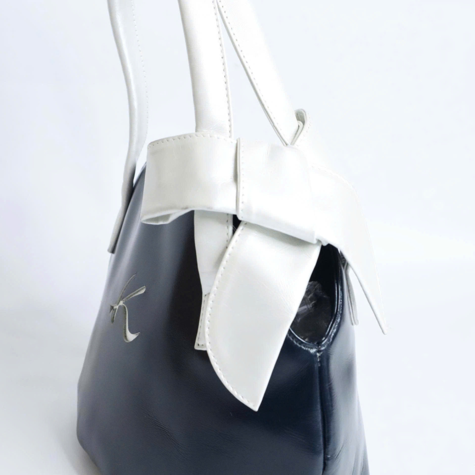 • Thiết kế: Túi đen, quai trắng tương phản, điểm nhấn nơ.