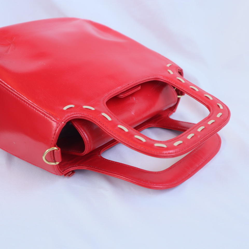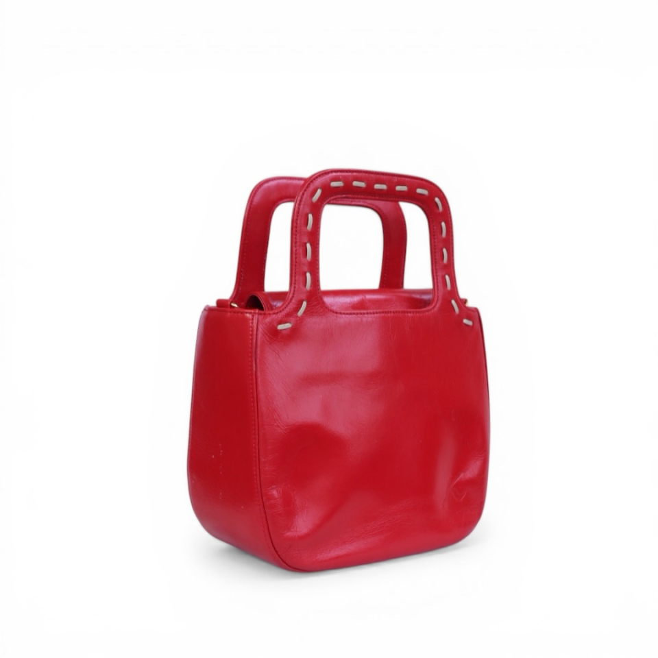 làm từ da Saffiano cao cấp với khóa kéo trên cùng màu bạc, phụ kiện kim loại và chữ ký đặc trưng.