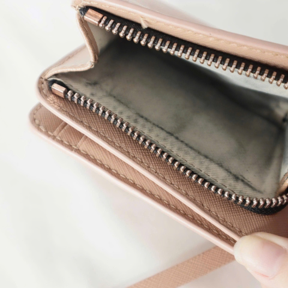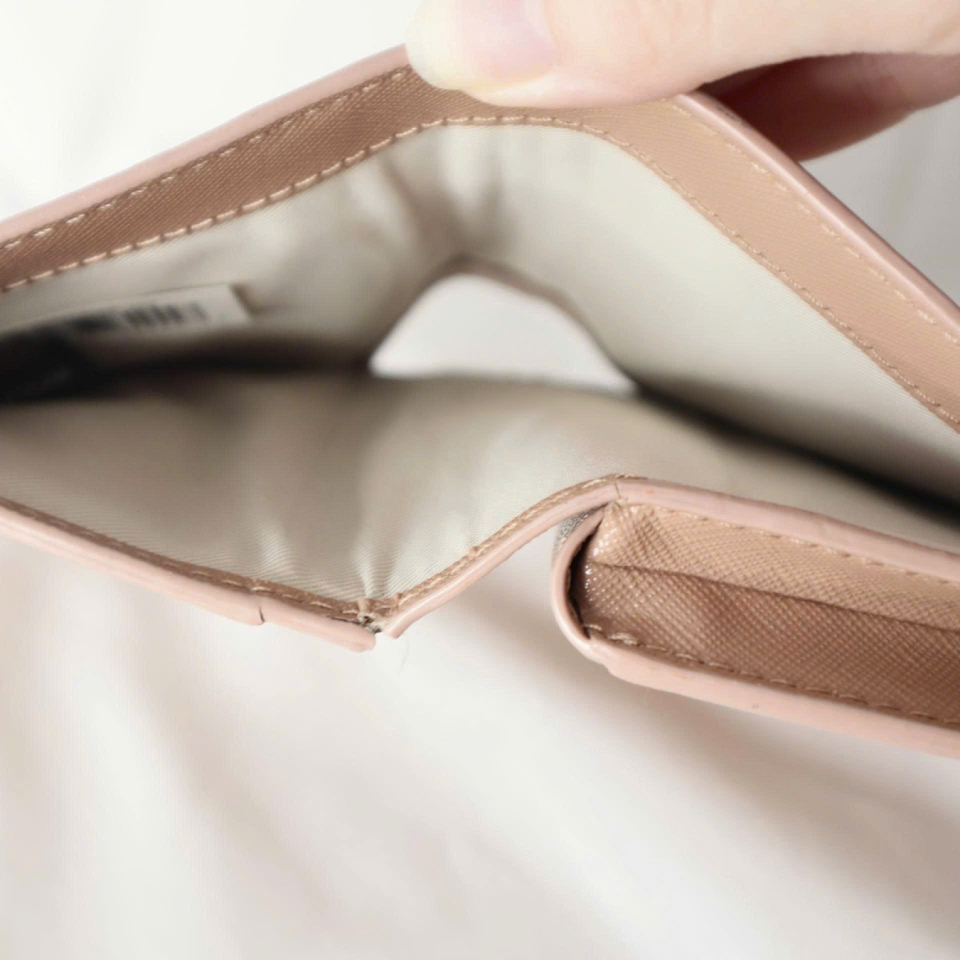 Thiết kế: Ví da gập đôi, phối màu hồng nhạt. Logo được gắn ở mặt trước. Bên trong có sáu ngăn đựng tiền giấy, bốn ngăn đựng thẻ, một ngăn đựng tiền xu và logo dập nổi màu vàng đồng. Lớp lót bằng vải màu xám. Khóa kim loại mạ vàng có khắc logo.