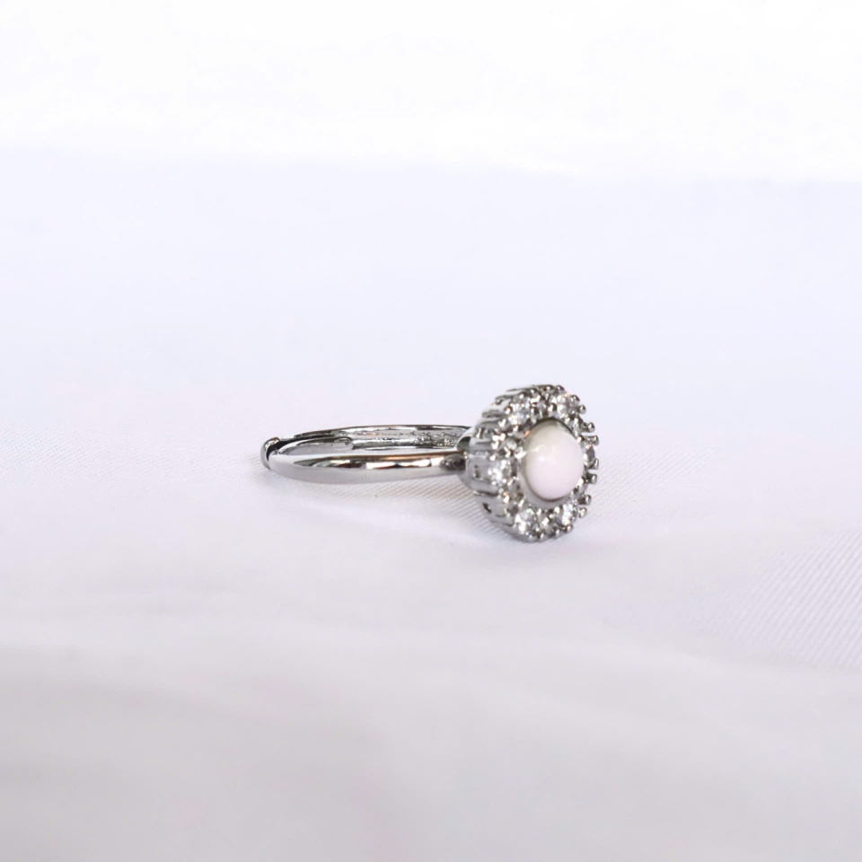 Thiết kế: Nhẫn có thiết kế hiện đại với các viên đá nhỏ đính xung quanh mặt đá.