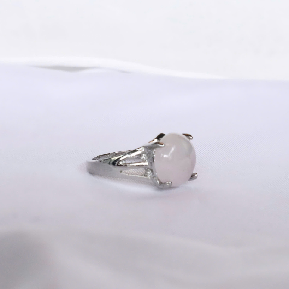 Đá quý: Viên đá chủ màu hồng nhạt, hình bầu dục (oval), màu sắc nhẹ nhàng và ý nghĩa phong thủy, được cho là mang lại tình yêu và may mắn.