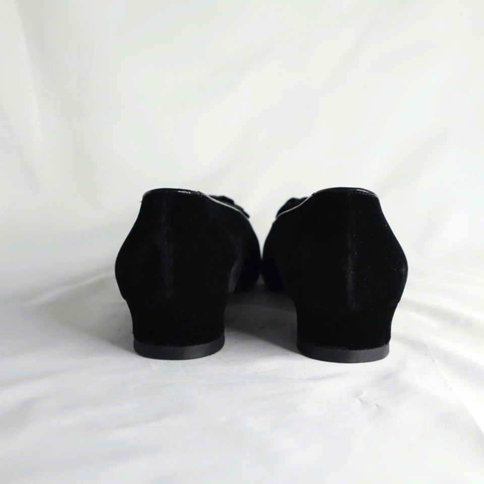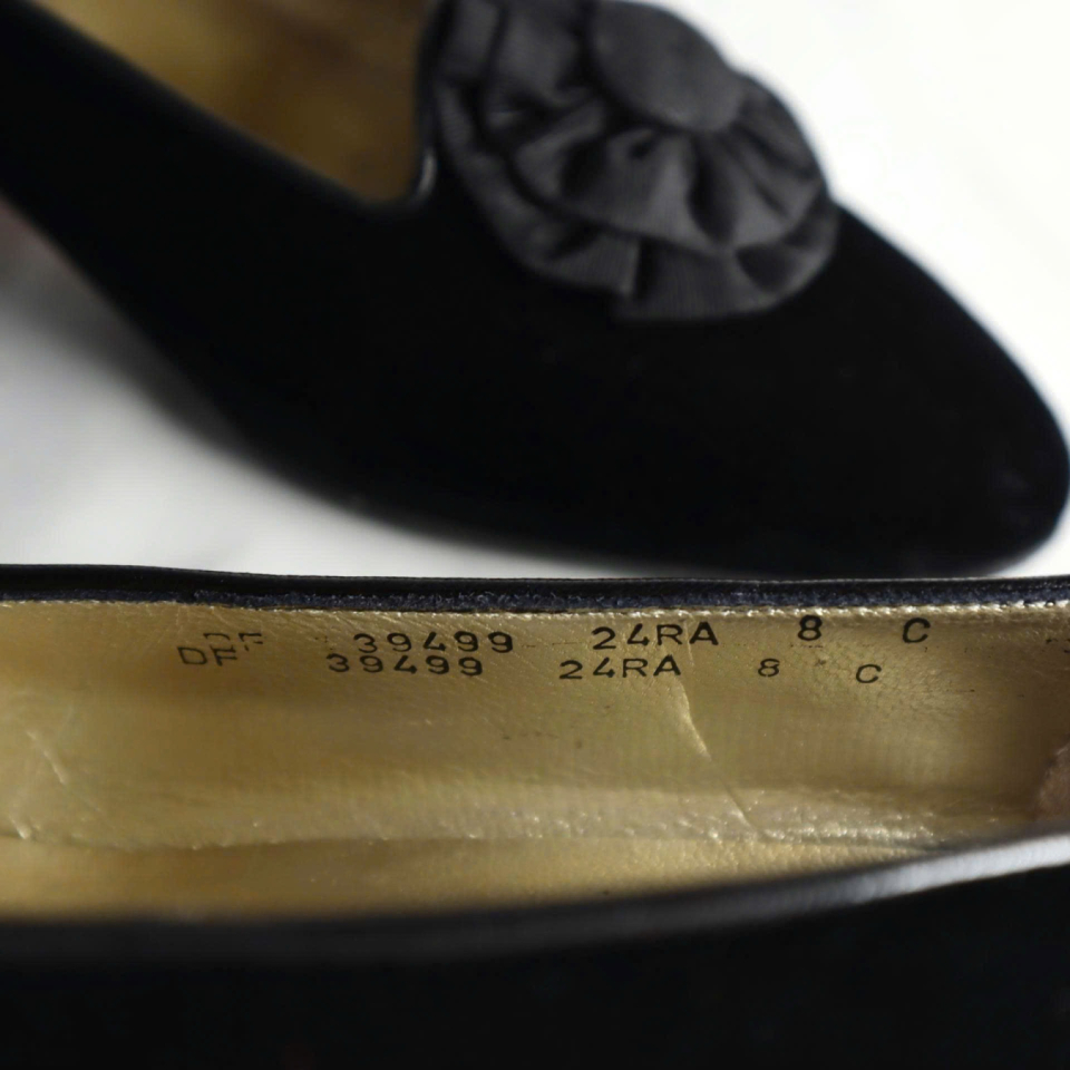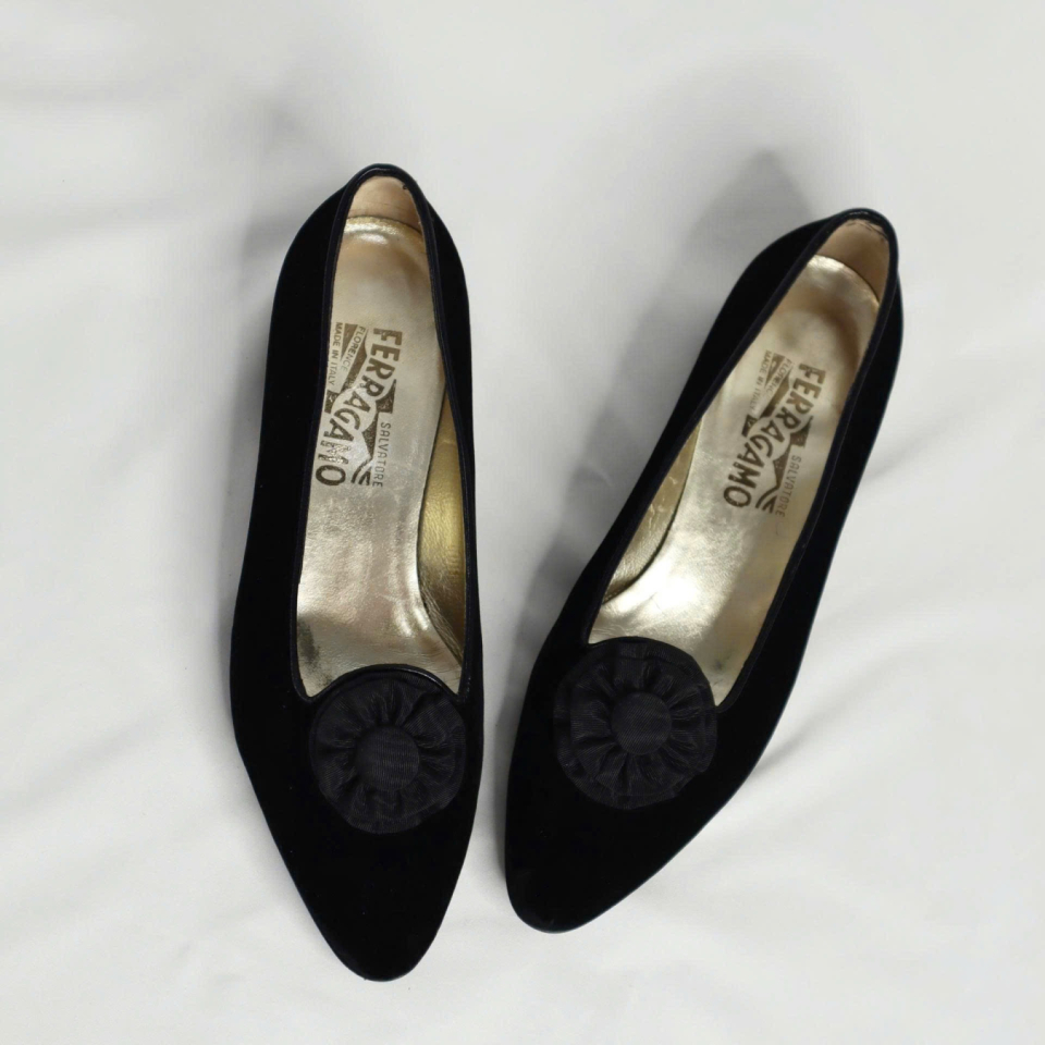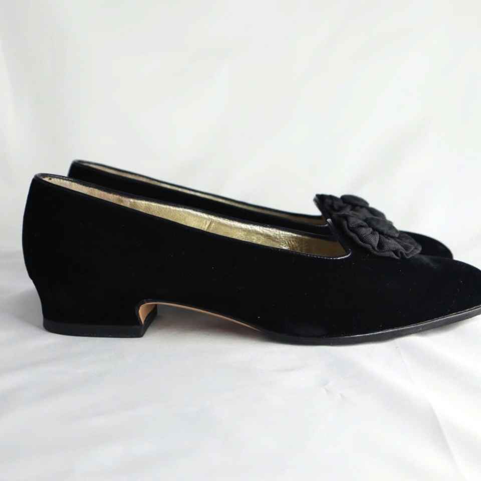 Kiểu dáng: Giày cao gót mũi nhọn cổ điển. Phần thân trên có thể làm từ nhung (velvet) hoặc sa-tanh (satin). Điểm nhấn là họa tiết hoa hồng xếp nếp cùng màu ở mũi giày.