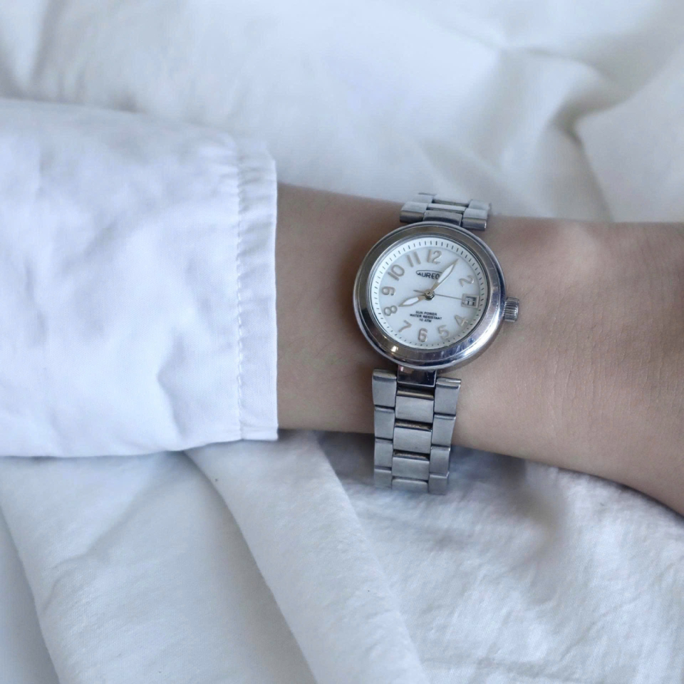 Mặt số: Màu trắng tròn cổ điển, cọc số Ả Rập lớn, kim và cọc số phủ dạ quang (luminous) nhẹ.