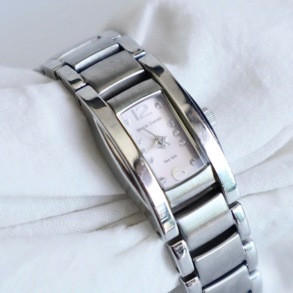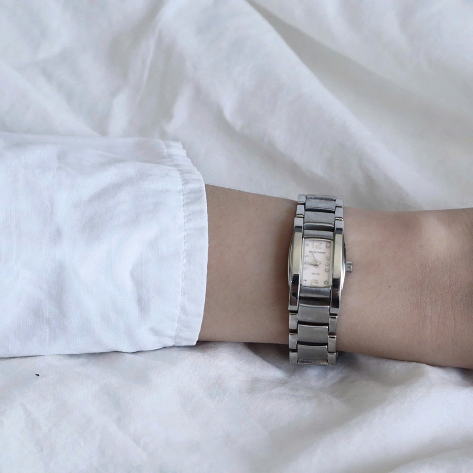 Mặt số: Mặt số nhỏ hình chữ nhật, màu hồng nhạt.