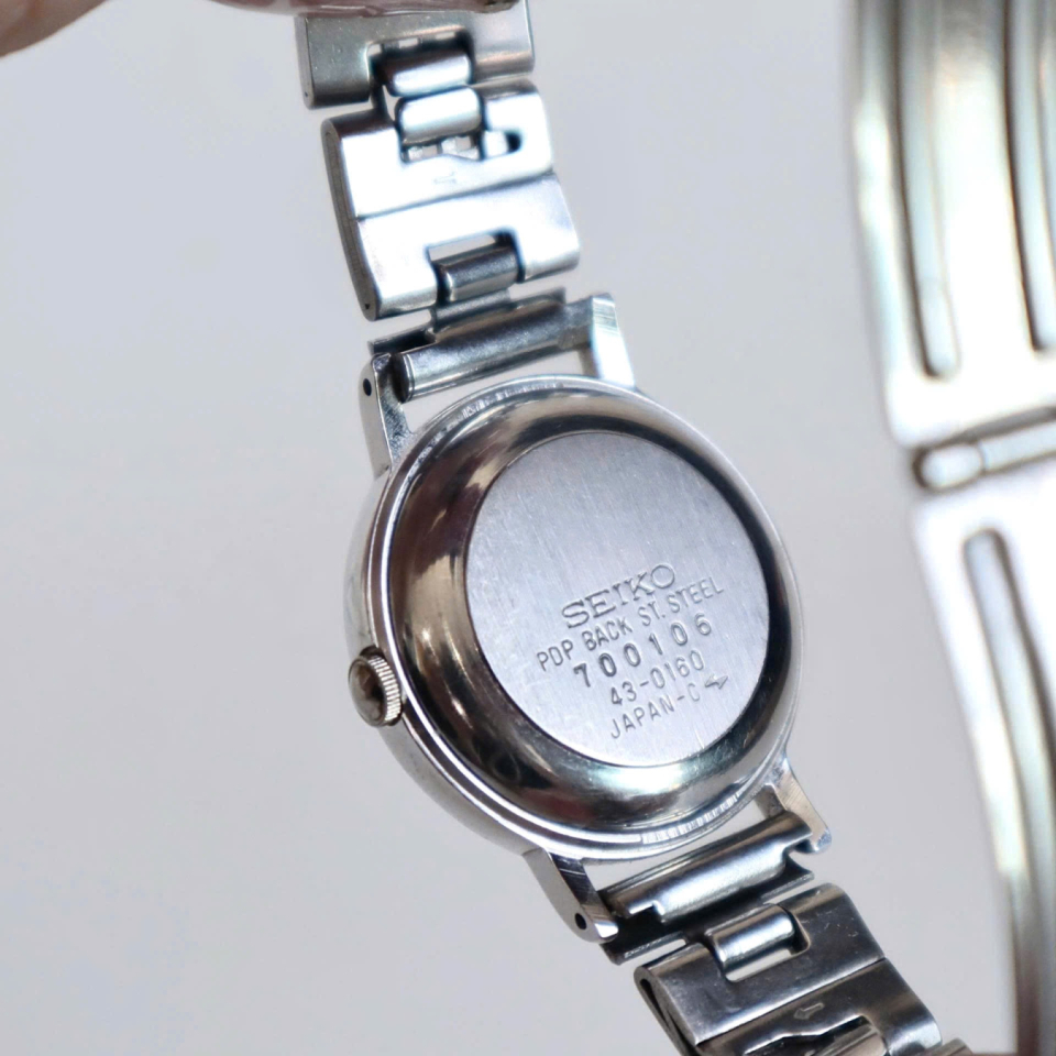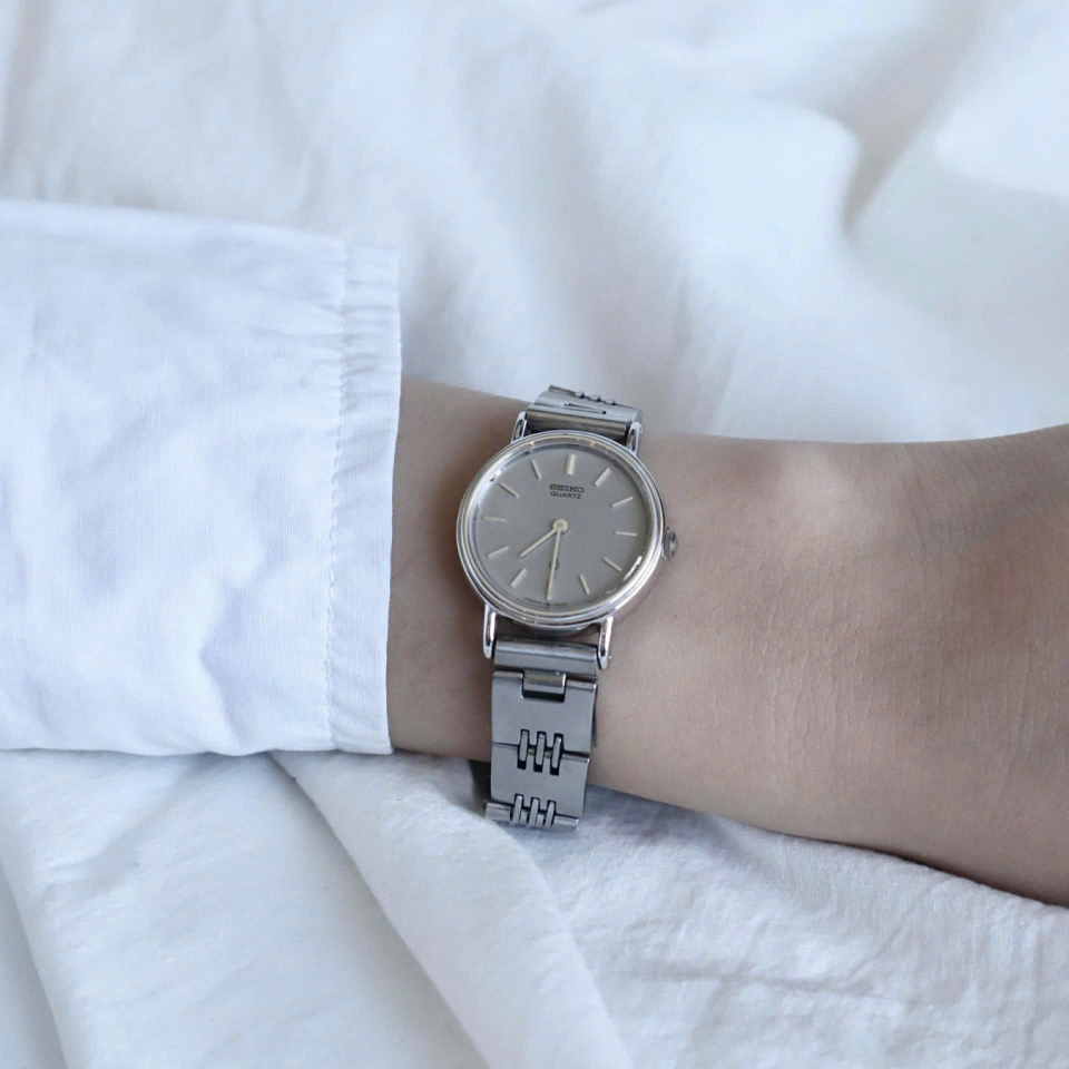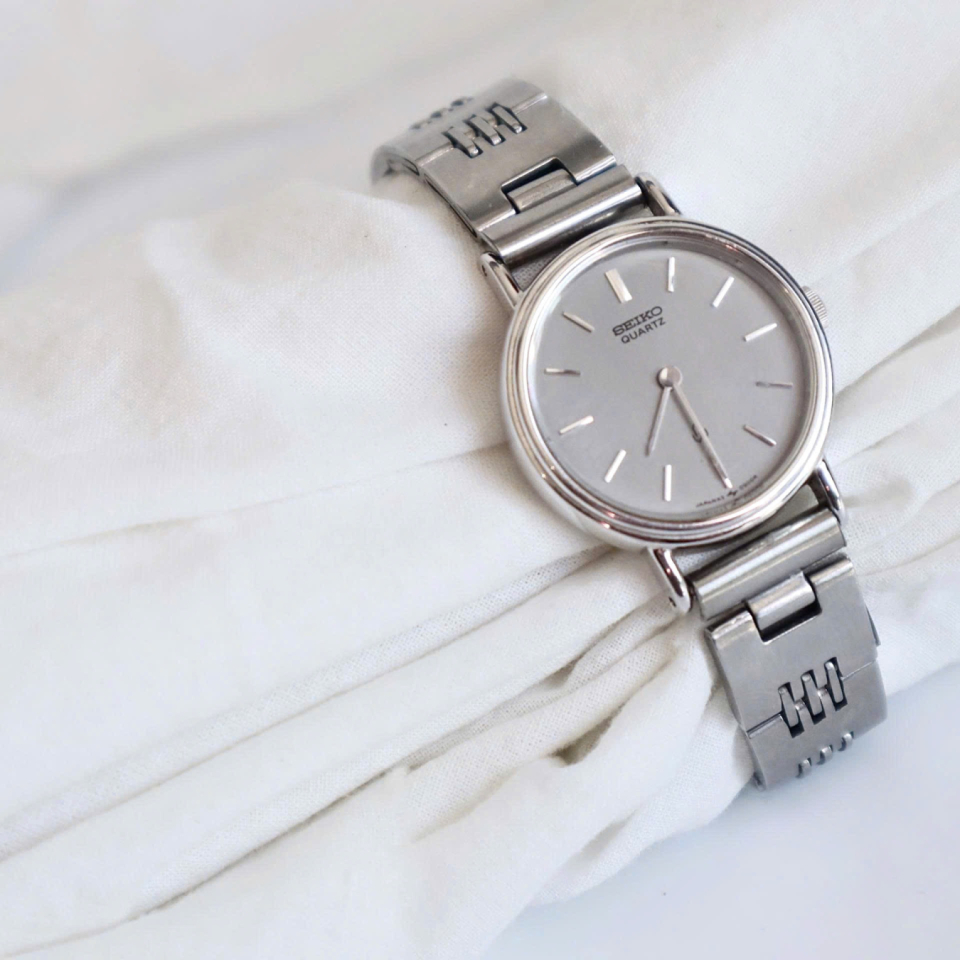 Đặc điểm: Mặt bạc đơn giản, tối giản theo phong cách “Seiko minimalist” thập niên 80. Kim mảnh, vỏ nhỏ gọn, phù hợp cả nam và nữ.